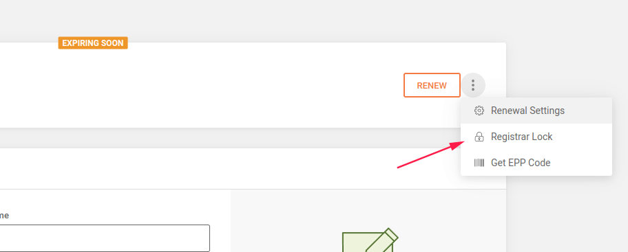 3、点击要转出域名的MANAGE,然后点击域名后面3点下面的Registrar Lock