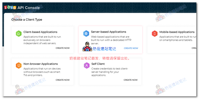 3、点击 Zoho OAuth Creation获取需要使用到的账号信息。