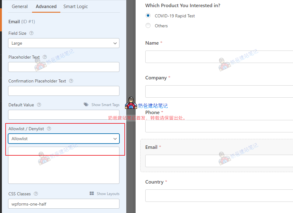 1、进入WPForms的表单,找到你需要设置黑白名单的项目点击。