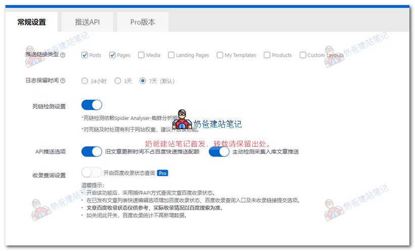 收录查询可以自动帮你查询文章在百度的收录状态,是一个高级功能,中文网站站长可以考虑打开。