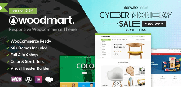WoodMart内置了60多个demo,可以直接导入了使用,而且专门针对WooCommerce进行了设计优化和功能增强,推荐购买。