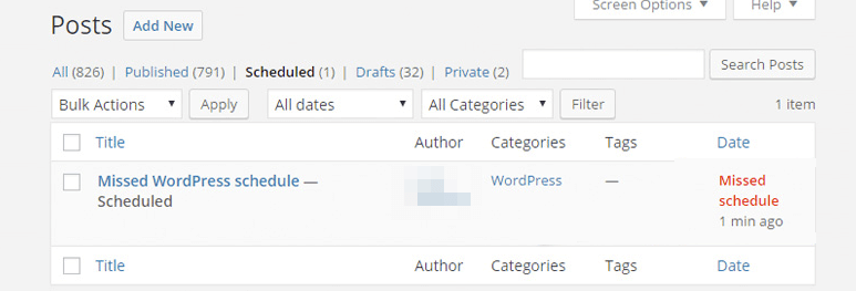 不知道你用没用过WordPress的定时发布功能,通常情况下WordPress会在你文章设置的时间自动发布,但是某些情况下,会出现自动发布失败,报Missed Schedule的错误。这里分享下解决Missed Schedule错误的办法。