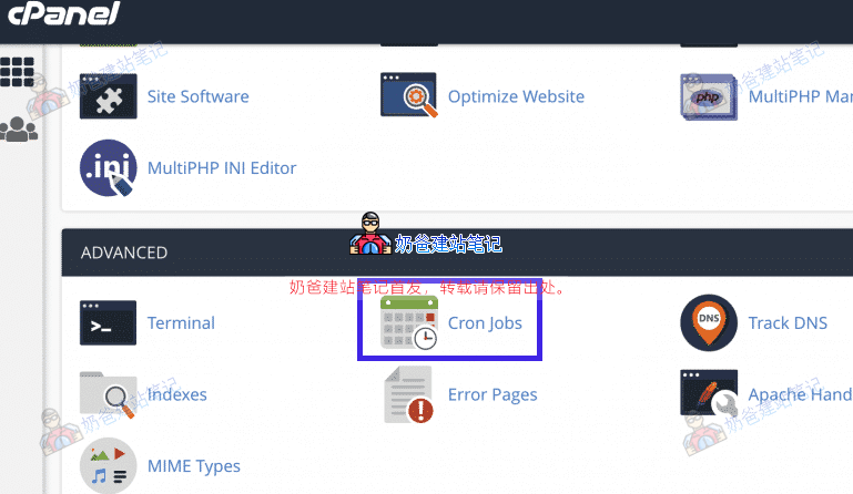 2、在服务器上设置计划任务,以Cpanel为例,进入CPanel,然后找到Cron jobs。
