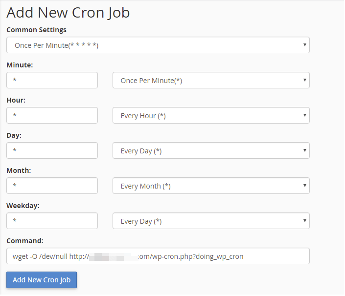 Wget -O /dev/null http://你的网址.com/wp-cron.php?doing_wp_cron