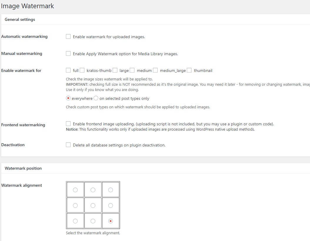 image-watermark 亮点功能在于可以把你之前已上传的图片也加上水印。功能上同样支持加水印的位置,并能控制透明度。