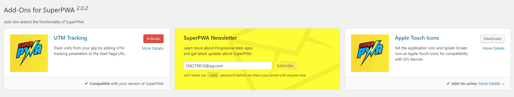 Add-Ons for SuperPWA 扩展设置: