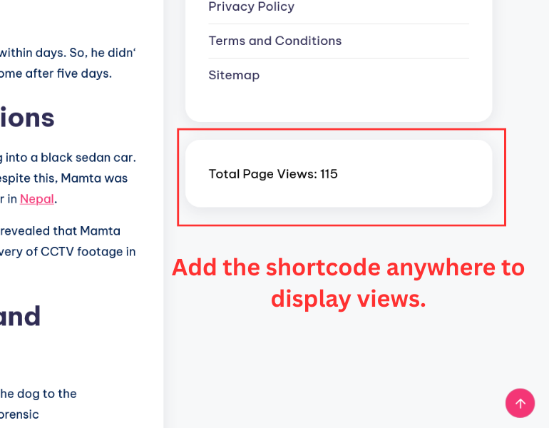 我可以在小部件或页脚中使用短代码吗?是的,[total_views]适用于帖子、页面、小部件、页脚和侧边栏区域。