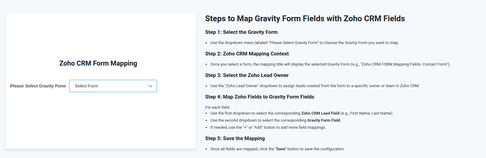 - 将Gravity Form字段映射到Zoho CRM字段