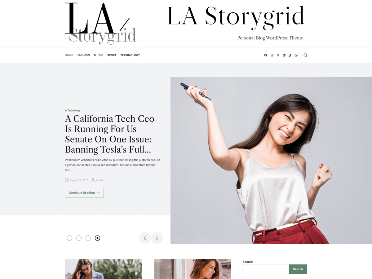 导读:最低WordPress核心版本:5.9要求最低PHP版本:5.6StoryGrid是一个时尚、简约且现代的WordPress博客主题,专为讲故事的人打造。它非常适合作家、旅行者和生...