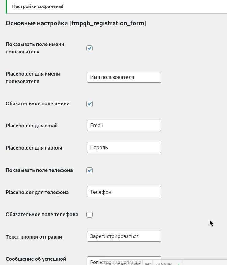 通过WordPress插件菜单激活配置设置设置|表单多弹出窗口测验生成器使用简短代码:[fmpqb_registration_form]