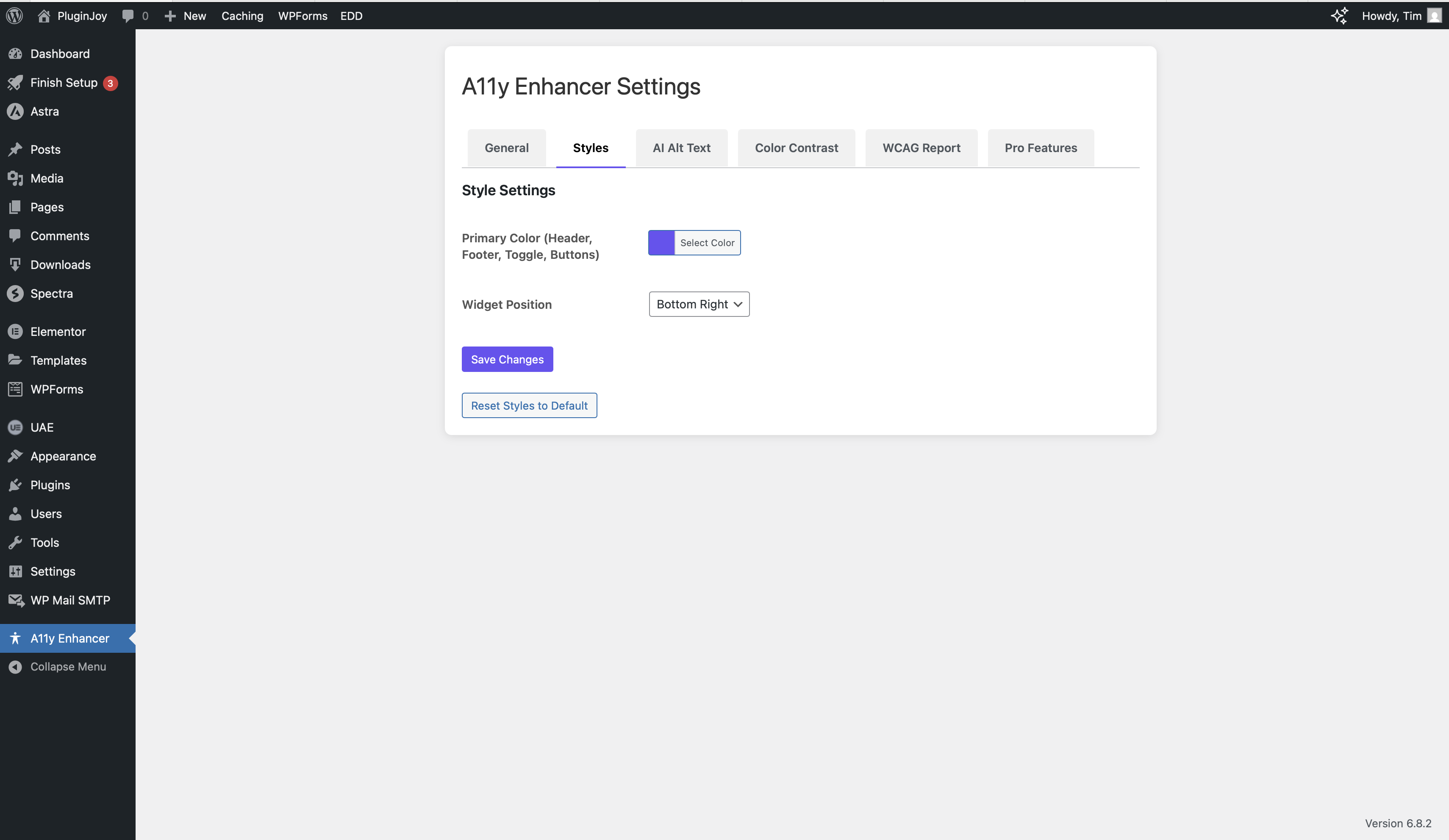 转至“设置A11 y增强器”以调整小部件位置、颜色、字体和其他样式选项。Pro版本中提供了额外的定制。