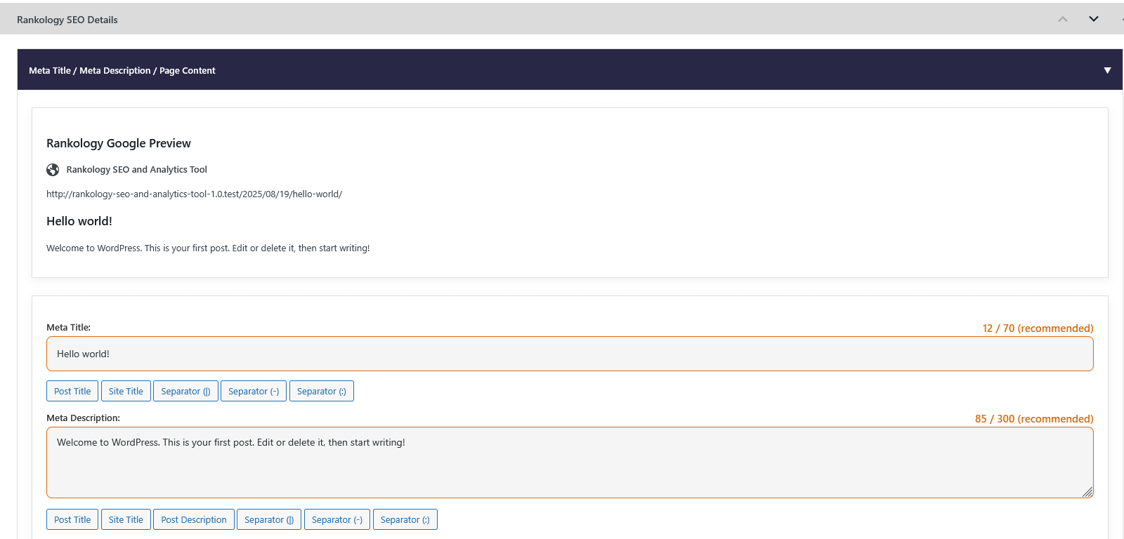 编写引人入胜的Meta描述来总结内容。使用Rankology监控长度、关键词存在情况和点击价值,以获得更好的搜索片段可见性。