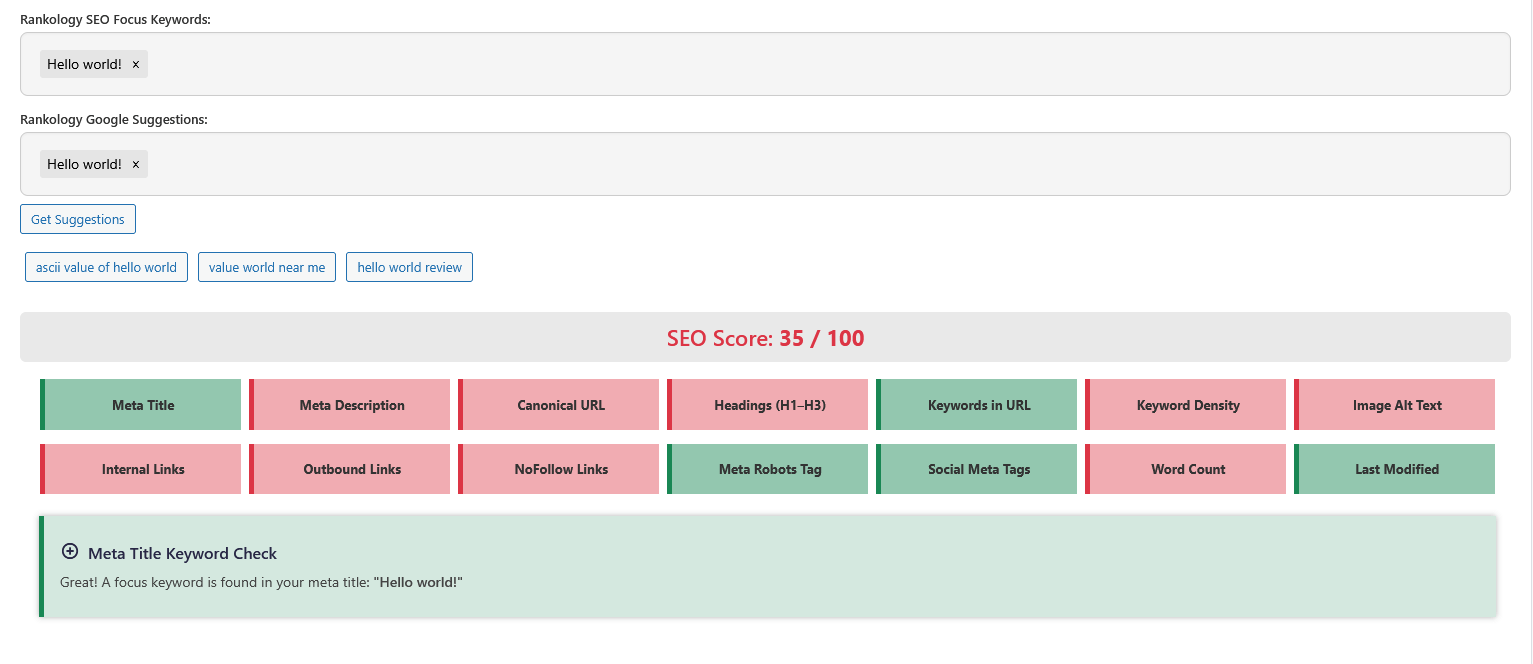 为每条帖子/页面分配和管理焦点关键词。分析内容、标题、URL和Meta字段中的关键字使用情况,以确保强大的优化信号。