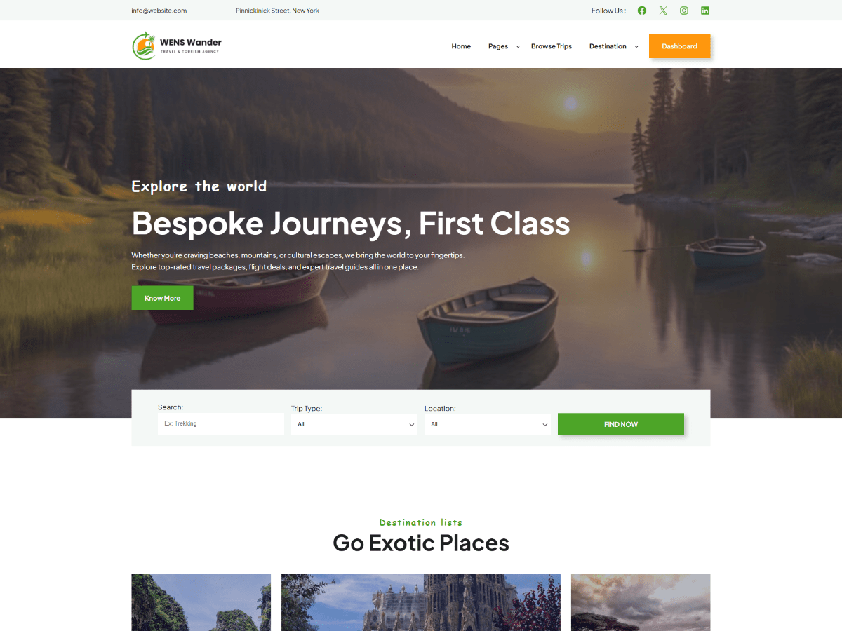 Wens Wander是一个干净、现代、响应灵敏的WordPress主题,专为旅游博主、旅游运营商和冒险寻求者设计。凭借时尚的布局和直观的设计,Wens Wander提供了展示旅行故事、目的地指南和策划旅游的完美平台。它考虑到了灵活性,支持与WP Travel插件的无缝集成,使用户能够直接从网站管理行程、预订和行程。该主题针对性能进行了优化,适合移动设备,并且SEO友好,确保快速且可扩展的网站体验。无论您是创办旅游博客、提供导游服务还是经营旅行社,Wens Wander都可以轻松构建一个视觉吸引力且用户友好的网站,无需编码。主要功能包括完全的响应能力和移动准备能力、WP Travel插件兼容性、干净现代的博客布局、展示目的地和行程的能力、可定制的主页部分、翻译支持、内置SEO优化和增强的性能。