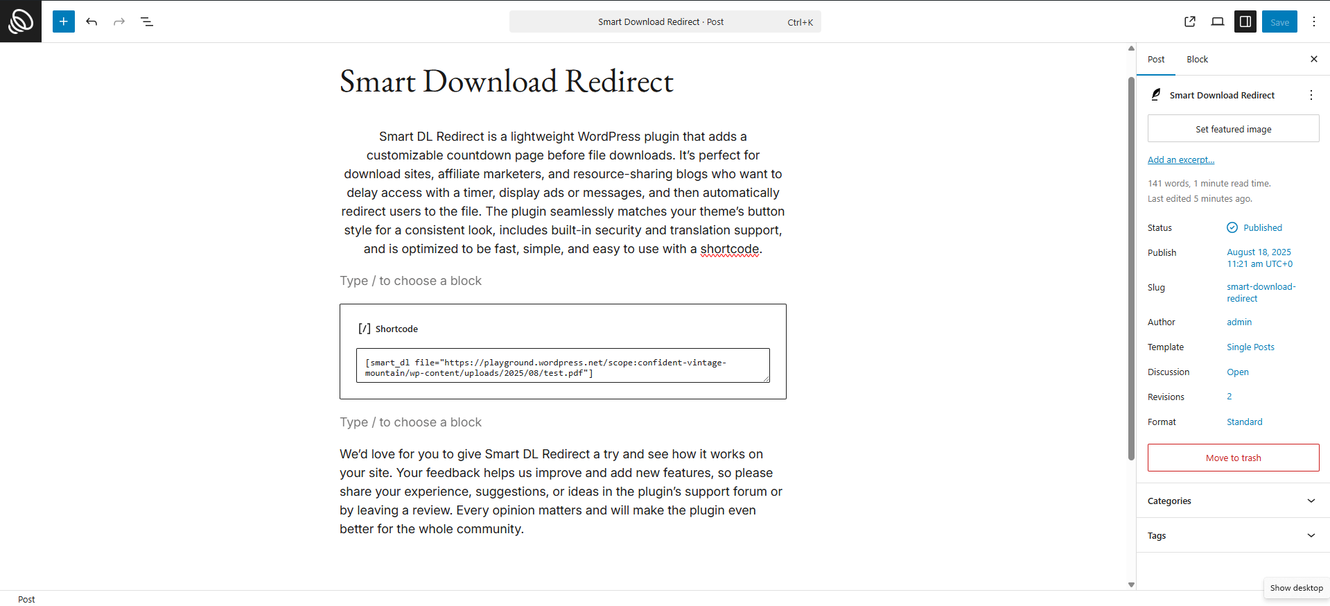 如何使用短代码?插入[smart_dl file="URL_TO_FILE"]