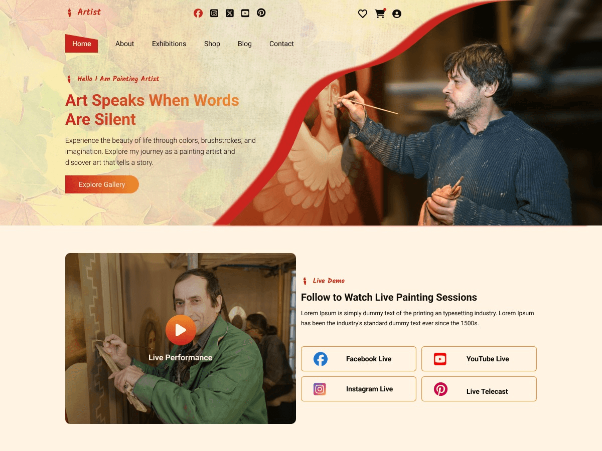 艺术家画家是一个多功能且优雅的WordPress主题,专为创意专业人士、机构、艺术家画家、美术画家、当代画家、抽象画家、现代画家、古典画家、油画艺术家、丙烯酸画家、水彩画家和重视复杂性和功能性的开发商设计。该主题凭借其干净、简约和现代的设计,提供了美学和性能的美丽平衡,适合画家、艺术家、设计师或任何创意组合。它建立在响应灵敏且视网膜就绪的框架之上,可确保您的工作在所有设备上(无论是台式机还是移动设备)都看起来令人惊叹。该主题包含高级个性化选项,允许完全控制布局、颜色、字体和部分,让您自由地设计反映您独特风格的网站。它包括可定制的横幅区域、推荐部分、团队展示和强大的行动号召按钮(CTS),以有效吸引访客。集成的社交媒体选项使您可以轻松地与跨平台的受众建立联系,同时其互动和动画元素为您的演示增添了魅力。对于代理机构和自由职业者来说,该主题适合开发人员和代理机构,具有优化的代码、简短代码和Bootstrap支持,以更快的页面加载时间和增强的自定义。安全、干净的代码可确保可靠的性能,而可供描述的功能可让您轻松接触全球受众。无论您是想突出艺术品、展示服务还是推广豪华创意品牌,艺术家画家都能灵活地满足多样化的需求。其多用途性质使其非常适合投资组合、博客或商业网站。简洁的结构、更快的性能和移动友好的响应能力的结合确保了无与伦比的浏览体验。通过Artist Painter,您可以创建一个复杂、互动且令人惊叹的网站,既体现创造力,又提供无缝的可用性。它不仅仅是一个主题;它是一个为卓越艺术而量身定制的强大数字画布。