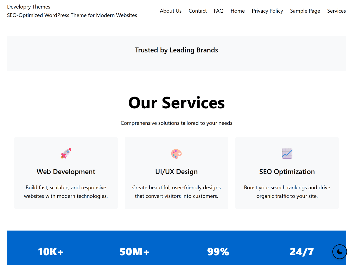专为下一代SEO和AI搜索可见性而设计的高级WordPress主题。专为开箱即用的性能、可访问性和结构化数据而构建。