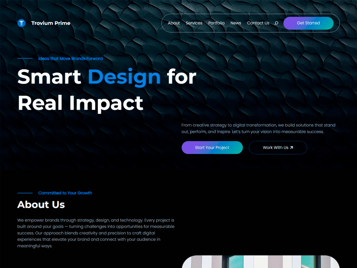 Trovium Edge是Trovium大胆、现代的儿童主题,专为重视创新、精确和增长的机构和企业打造。凭借完整的网站编辑(FSE)功能,它提供完全的设计自由度和时尚的黑暗美学,提升您的品牌影响力。Trovium Edge将极简主义优雅与高影响力的视觉效果融为一体,非常适合展示投资组合、建筑项目或数字服务。其精致的布局、直观的结构和专业的基调使其成为准备脱颖而出的创意人士和企业的完美选择。