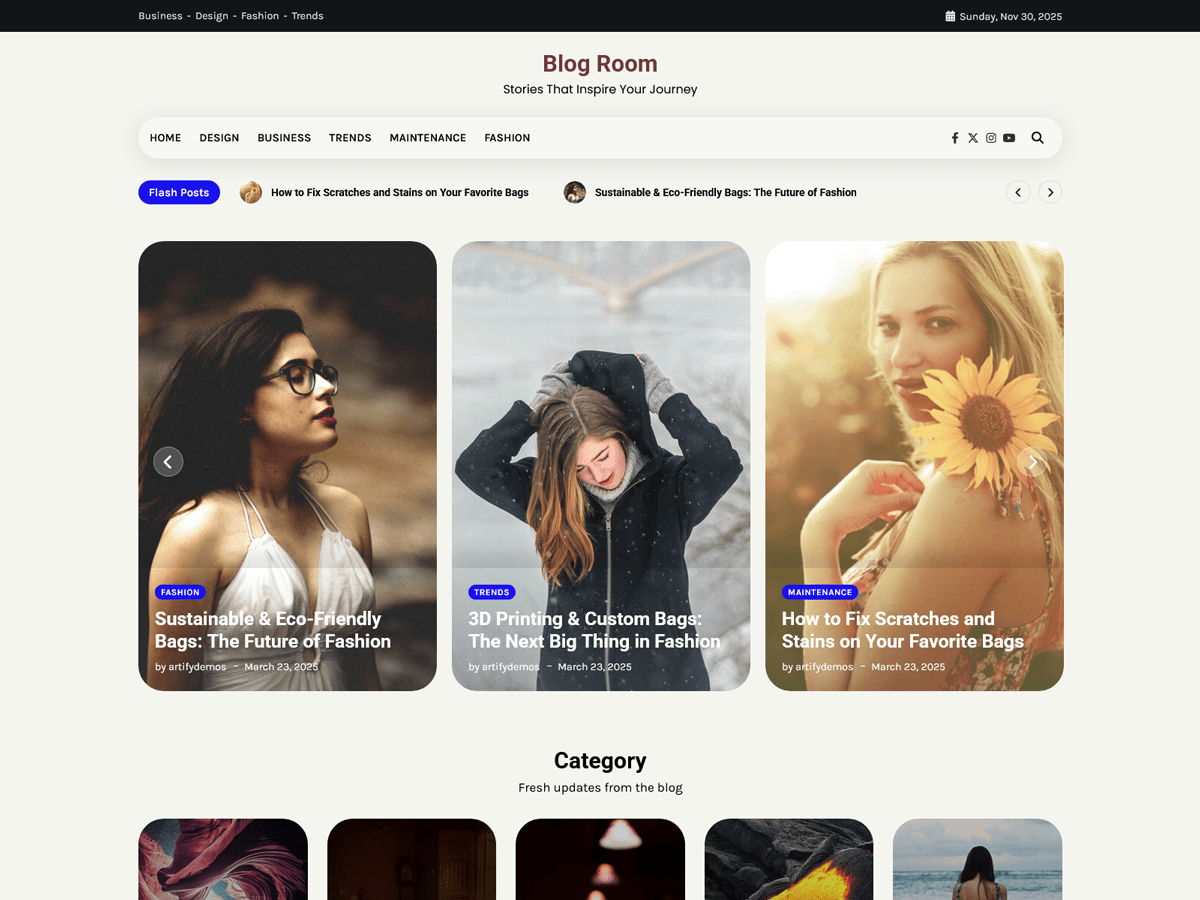 Blog Room是一个极简和轻量级的WordPress主题,旨在创建专业的博客网站。该主题设计简洁,非常适合各种博客类型,例如时尚、生活方式、旅行、美食和摄影。博客室适合移动设备且兼容跨浏览器,可以在各种设备和屏幕尺寸上访问。该主题还可供描述,允许您创建任何语言的博客。总体而言,博客室提供用户友好的界面、现代化和创意的设计以及一系列适合构建引人入胜且独特的博客网站的功能。实时预览:https://demo.artifythemes.com/blog-room/