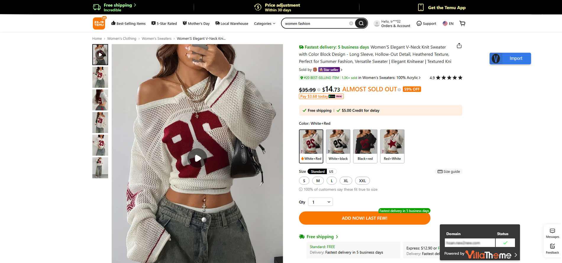 卸载Youtube指南、Youtube政策该插件显示在导入到WooCommerce商店之前要选择的Temu图像: