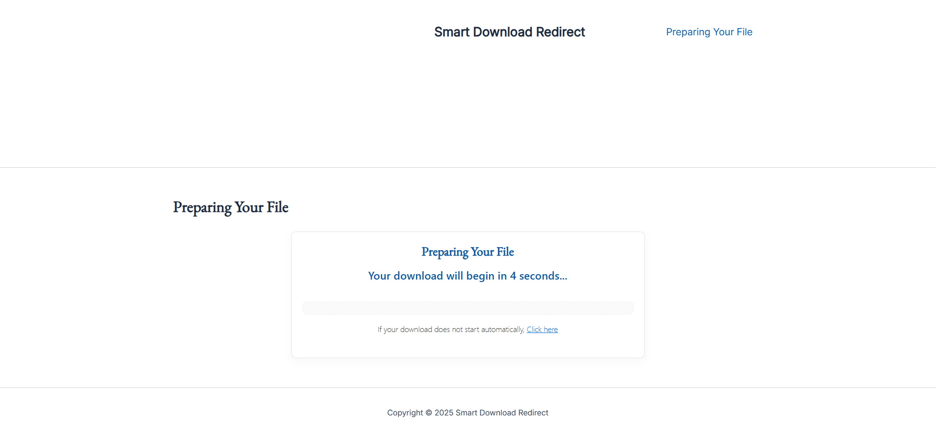 访问者单击下载链接后,他们将被重定向到可定制的- 准备下载-计时器倒计时的页面显示广告或自定义HTML,然后自动重定向到实际文件。