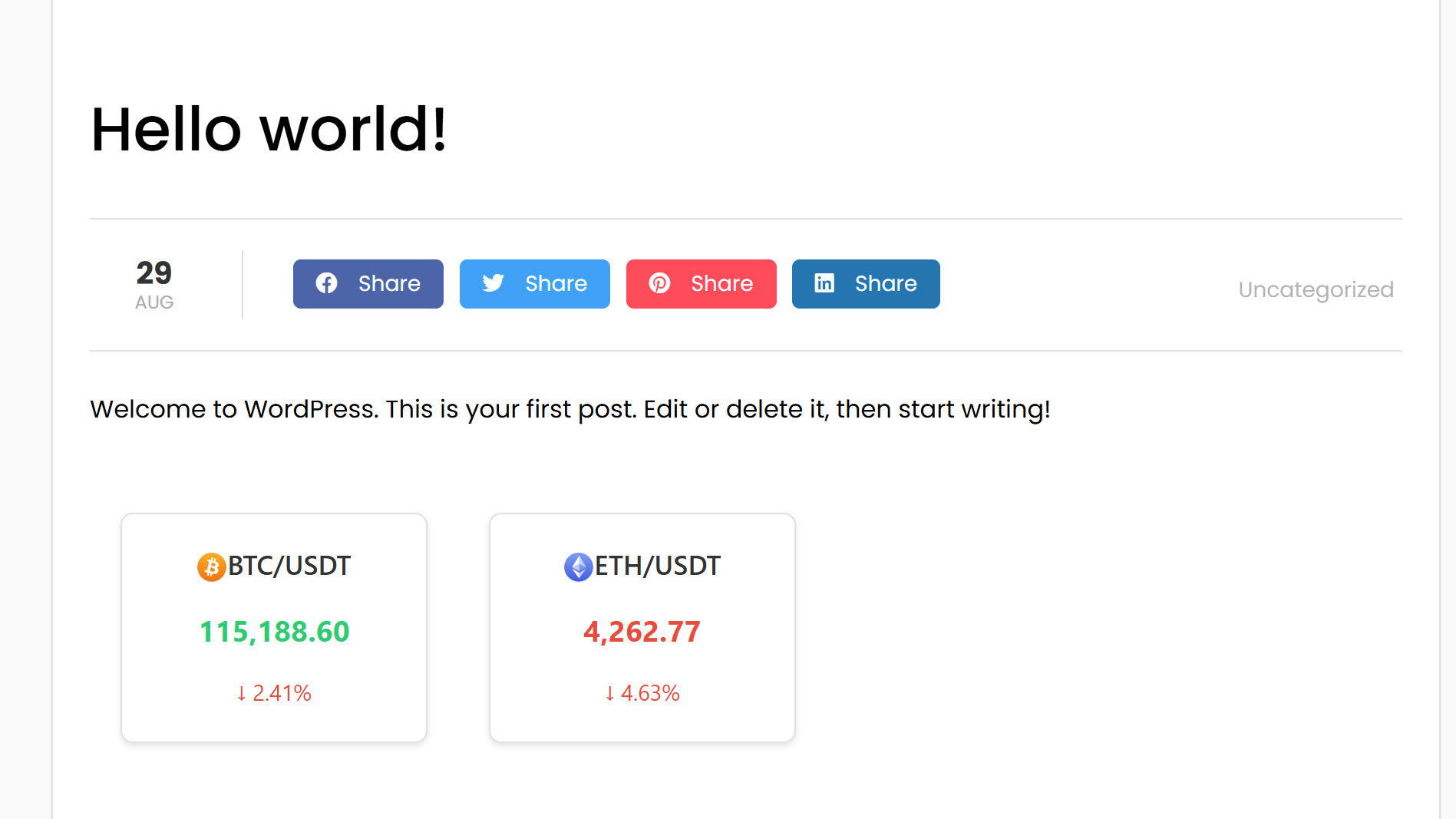 一个简单的WordPress插件,用于在您的网站上显示实时加密货币价格