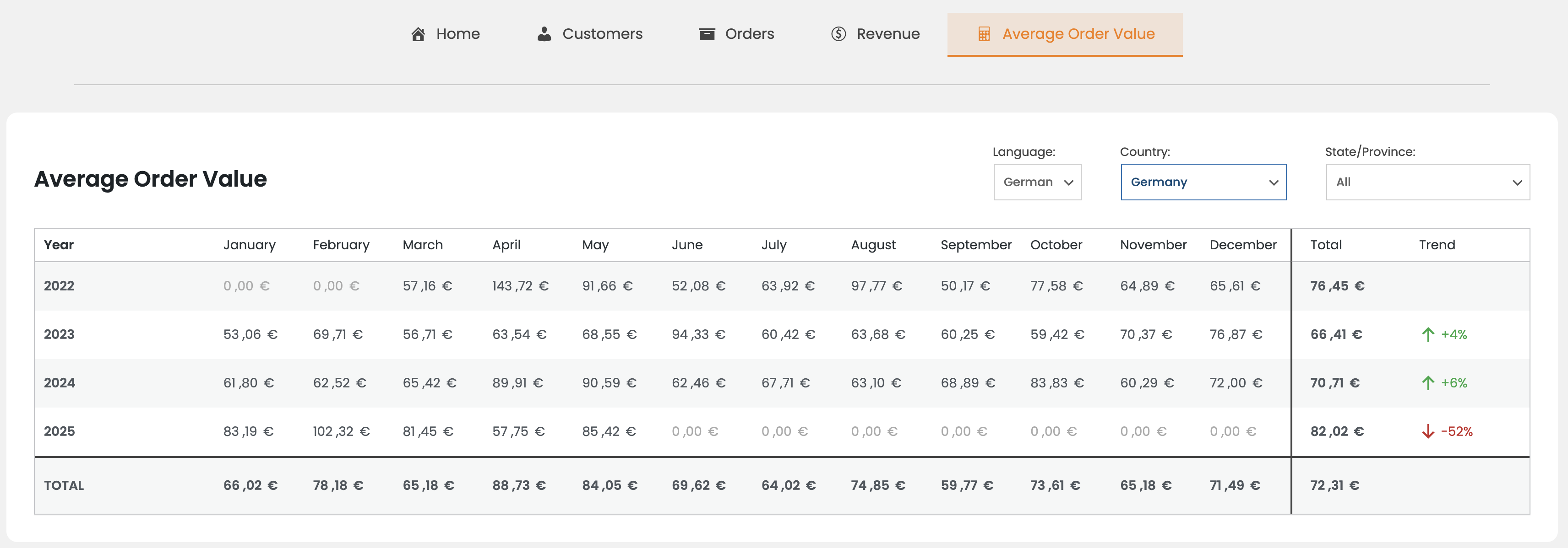 * 年度统计和销售分析