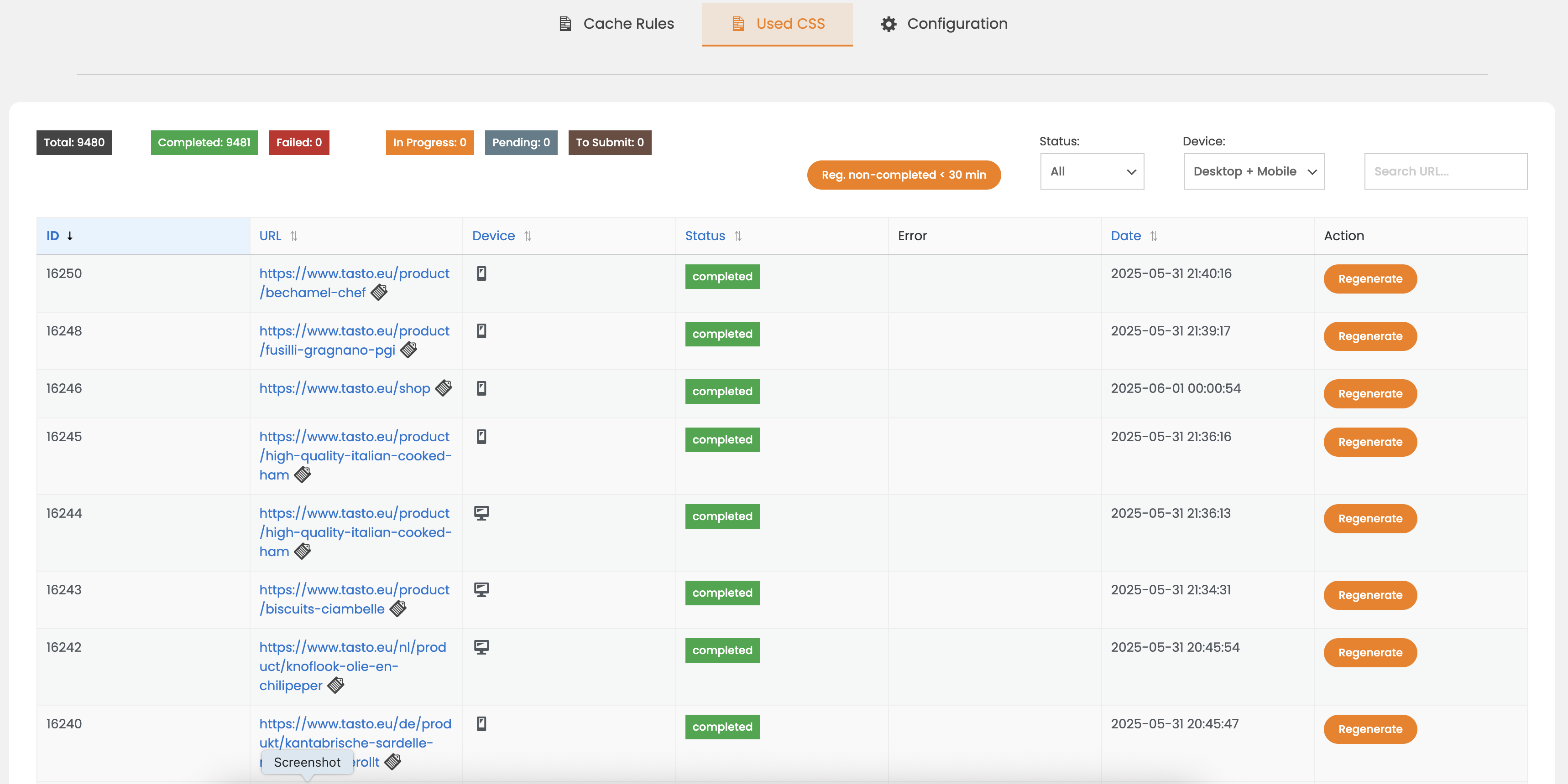 * 来自站点管理器仪表板的缓存管理