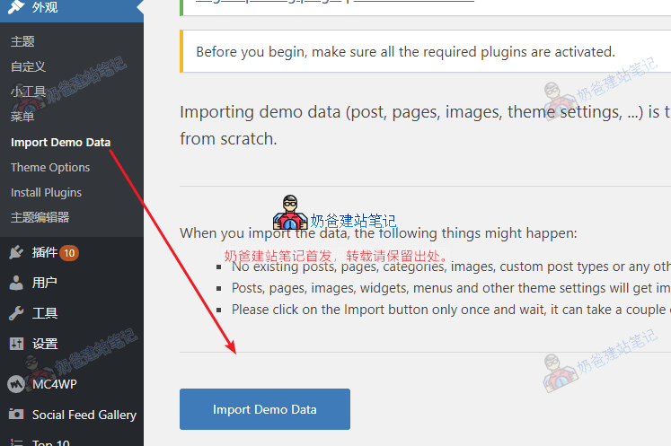 启用插件后,主题菜单下面选择导入演示数据。(也可以不导入)