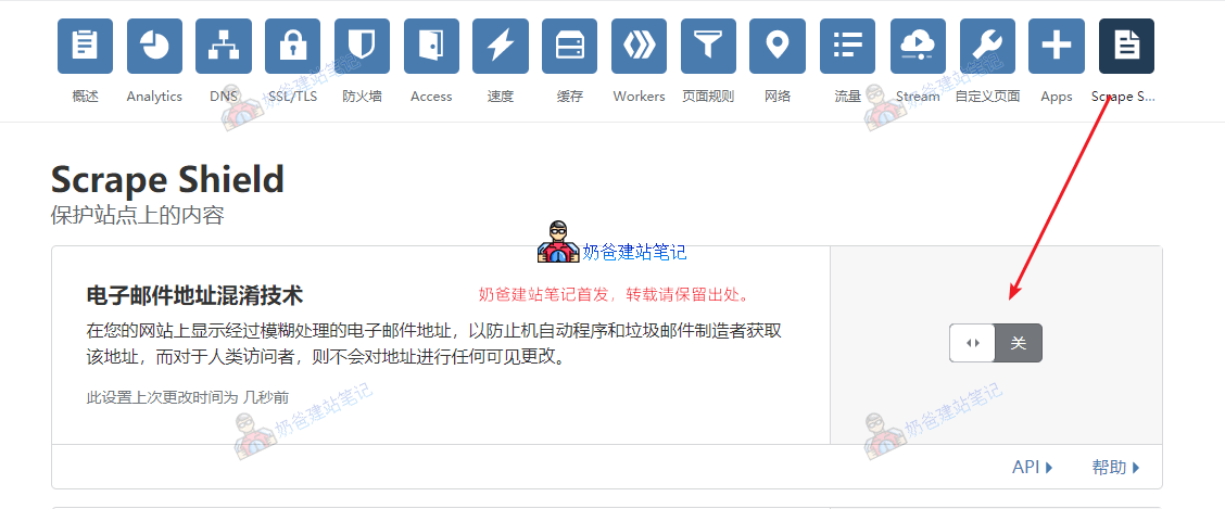 想要网站不加载email-decode.min.js,方法很简单,只需要进入Cloudflare后台,找到Scrape Shield,然后关闭电子邮件混淆的开关就可以了。