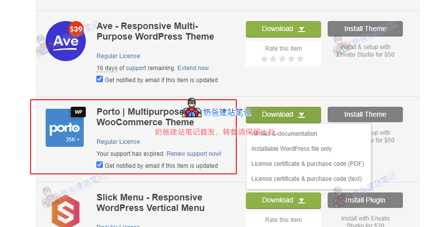 自己购买了正版Porto的(截图如下),考虑到很多外贸建站的朋友直接购买几十刀的付费主题有点拿不定主意,所以这里提供Porto破解版供大家测试。