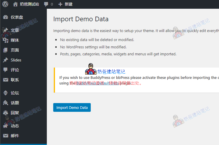 安装完毕后,启用buddy child子主题,会提示你安装插件,如下图: