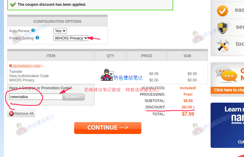 7、输入转入优惠码 newnaiba 获取1美元优惠。